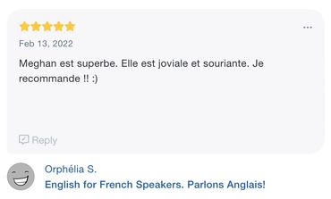 Megan is amazing! She knows how to help make French learning fun and is very engaging. My daughter is always excited to have time with Megan and to get her help. Megan explains content very thoroughly and is very encouraging, creating a positive learning environment. Working with Megan is great!l
